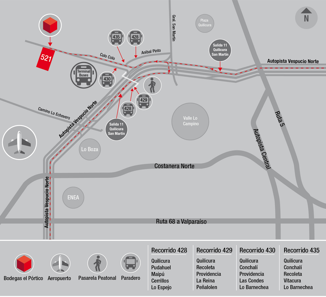 Ubicado en sector Lo Echevers, con una gran conectividad a través de Autopista Vespucio Norte y Autopista Central, a pasos de locomoción colectiva.